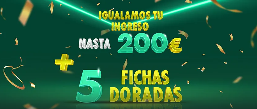 | Tipo de bono | Bono por depósito + fichas doradas |