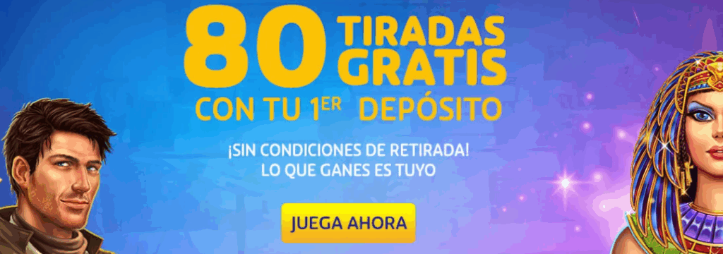 La oferta para nuevos usuarios consiste en un pack de 80 giros gratis en Book of Dead, repartidos en dos fases, con un depósito mínimo de 10€ y sin límite mínimo de retirada. Eso sí, se trata de una promoción exclusiva para usuarios seleccionados y accesible únicamente a través del enlace correcto.